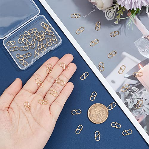 CHIUSURA A GANCIO A S: queste fibbie a gancetto sono di colore dorato, 30 pz in scatola, potrebbe usare per multi artigianato, circa 6.5 mm di larghezza, 12.5 mm di lunghezza, 1 mm di spessore, Foro: 3~3.5 mm, design aperto, adatto per diverse esigenze di creazione di gioielli.