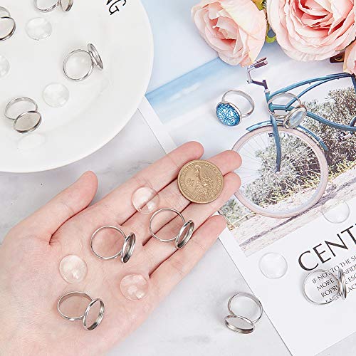 UNICRAFTALE 20 Imposta La Produzione di Anelli Regolabili, Impostazioni di Anelli di Cabochon Rotondi Piatti, Base per Anelli con Cabochon in Vetro Trasparente (16mm) per Creazione di Gioielli