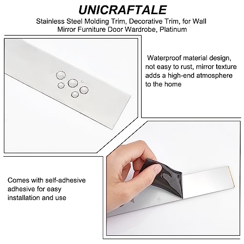 UNICRAFTALE 3m Modanatura da Parete 201 Acciaio Inossidabile Peel And Stick Modanatura Flessibile Autoadesiva Modanatura da Parete per Specchio da Parete Mobili Platino 30~30.5mm di Larghezza