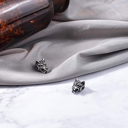 IL PACCHETTO COMPRENDE: Contiene 2 pezzo di perle di testa di lupo in acciaio inossidabile, adatto per la tua gioielleria fai-da-te;
