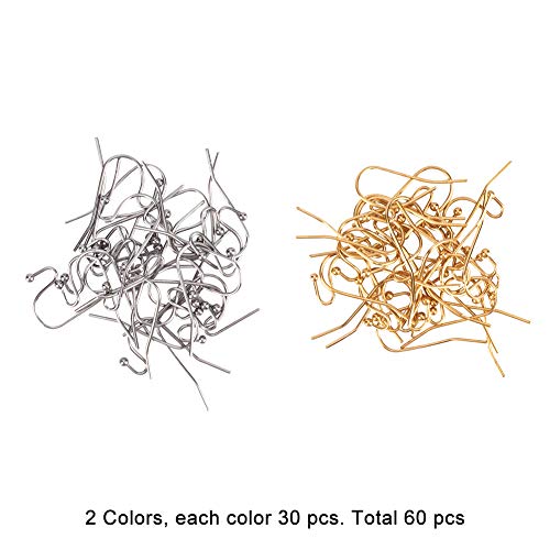UNICRAFTALE 60 Pezzi 2 Colori 304 Ganci per Orecchini in Acciaio Inossidabile Colore Dorato E Acciaio Inossidabile Filo per L'Orecchio 0.8mm Perno Filo Risultati per Creazione di Gioielli 21x12x2mm