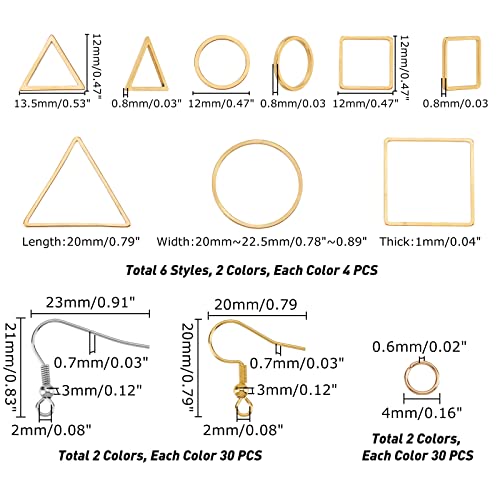 UNICRAFTALE 3 Stili Circa 168 Pezzi Anello di Collegamento in Acciaio Inossidabile 2 Colori Orecchini A Goccia Kit Fai da Te con 60 Ganci per Orecchini 60 Pezzi Anelli di Salto Kit di Forniture