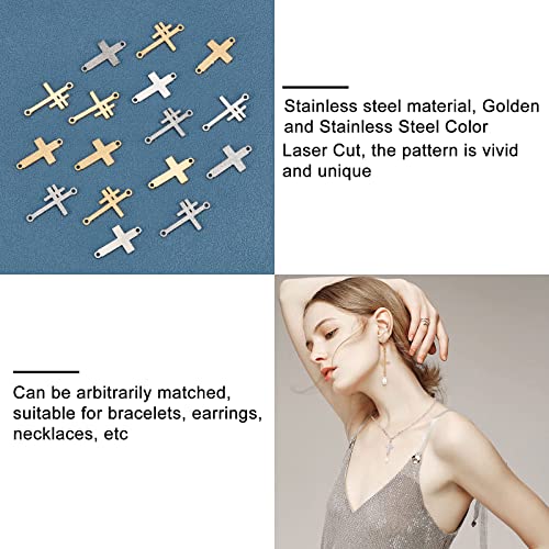 UNICRAFTALE 16 pz 4 Stili 2 Colori Connettori in Acciaio Inossidabile Collegamenti 22 mm di Lunghezza Ciondoli A Motivo Croce con 2 Fori Connettore A Croce Charms Ciondoli di Collegamento Risultati
