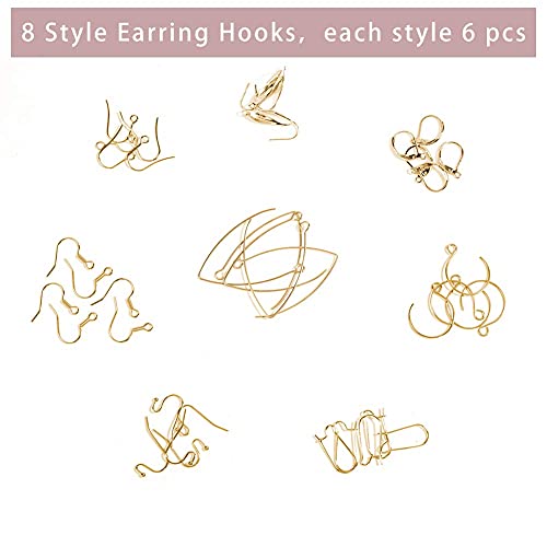 UNICRAFTALE 8 Styles Impostazioni Orecchino in Acciaio Inossidabile (Perno da 0.7-1 mm), 48 pz (24 Paia) Ganci per Orecchini, Fili Auricolari in Metallo Dorato per La Fabbricazione Parti di Orecchini