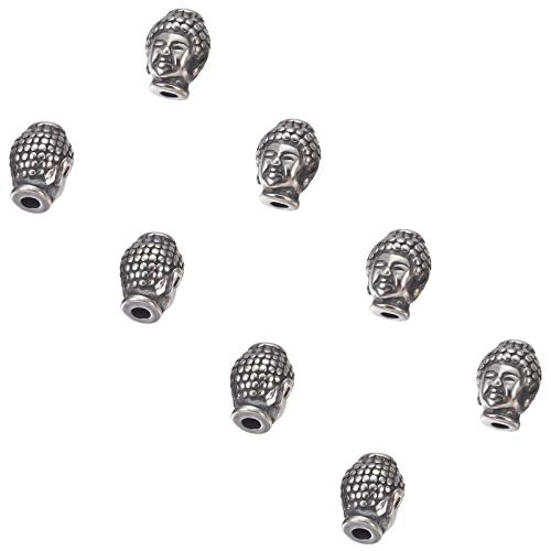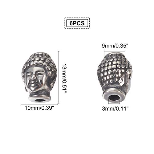 UNICRAFTALE 6pcs Testa di Buddha Perline in Acciaio Inossidabile Perline Argento Antico Perline Distanziali 3mm Foro Perline Allentate in Metallo Perline Braccialetto per Creazione di Gioielli