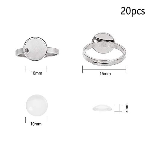 UNICRAFTALE 20 Set 10mm Vassoio Tondo Piatto Anelli Fai da Te Fai da Te Kit di Regolazione Regolabili 304 Anelli in Acciaio Inox Componenti E Cabochon in Vetro Trasparente per Creazione di Gioielli