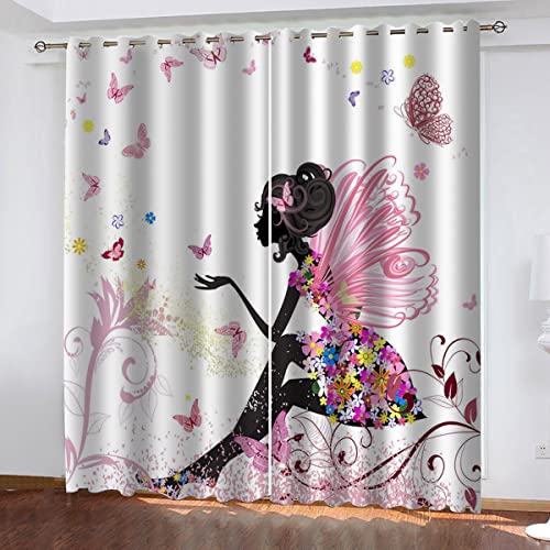 Unictrul Tende Oscuranti Termiche Isolanti Fata Farfalla Bianco Rosa Nero Giallo Viola Camera da Letto Soggiorno Moderne Tenda Cameretta Bambini 85x200cm x2