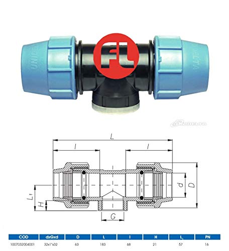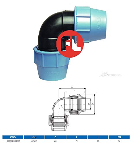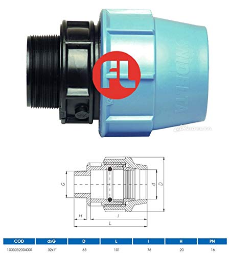 Unidelta raccordi in pp a compressione diametro 32 attacco 1" polietilene tubi, raccordo femmina