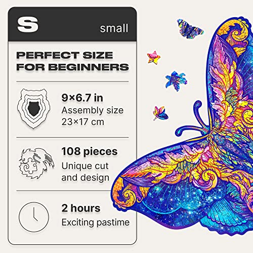 UNIDRAGON Puzzle Originali di Legno - Farfalla Intergalattica, 108 pezzi, Dimensioni Ridotte, 23 x 17 cm, Bellissimo Pacchetto Regalo, Forma Unica Miglior Regalo per Adulti e Bambini