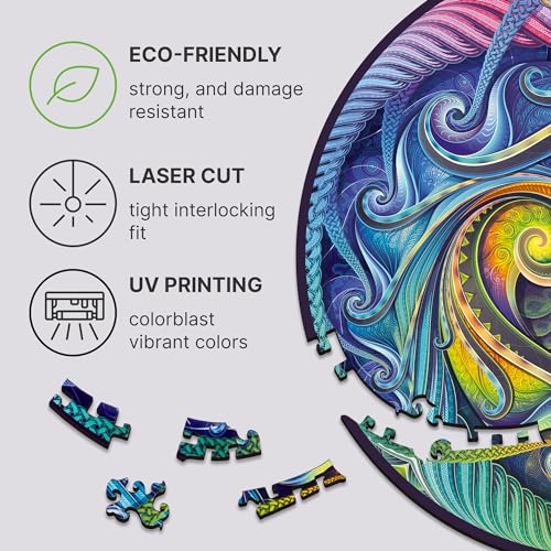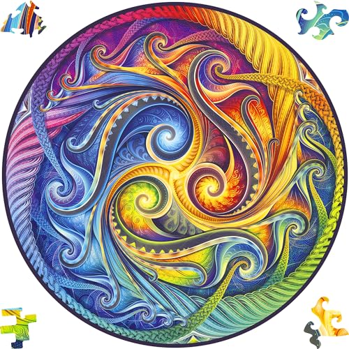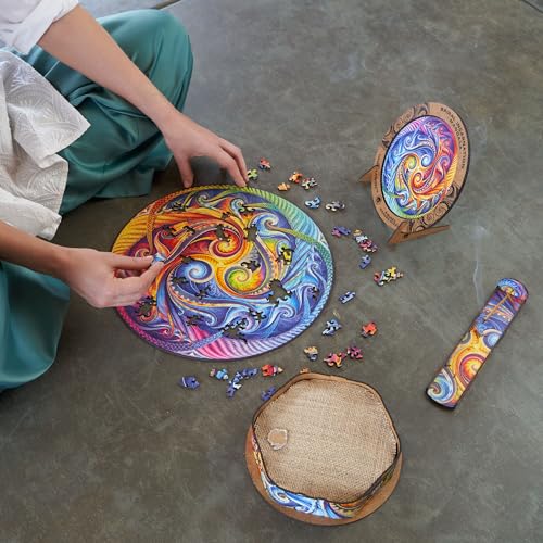 UNIDRAGON Puzzle Originali di Legno - Mandala Incarnazione a Spirale, 700 pezzi, Dimensione Reale, 45 x 45 cm, Bellissimo Pacchetto Regalo, Forma Unica Miglior Regalo per Adulti e Bambini