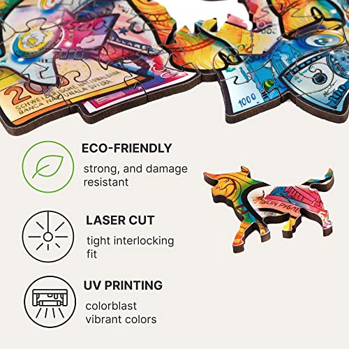 UNIDRAGON Puzzle Originali di Legno - Toro Prosperoso, 298 pezzi, Dimensioni del Re, 31 x 35 cm, Bellissimo Pacchetto Regalo, Forma Unica Miglior Regalo per Adulti e Bambini