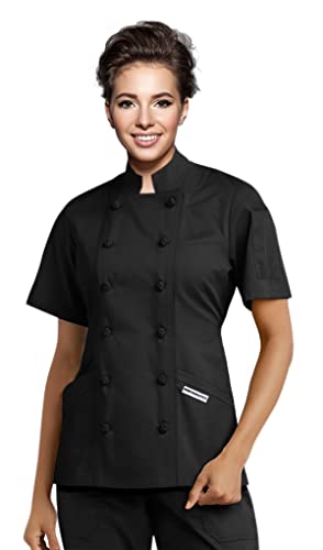 Uniformates Giacca da cuoco da donna a maniche corte in panno annodato e divisa da chef per maestri chef e pizzaioli (L, Nero)