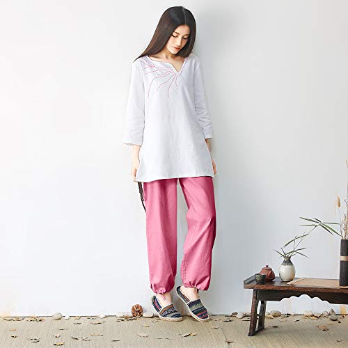 KSUA Uniforme per la Meditazione delle Zen delle Donne Tai Chi Suit Abbigliamento da Yoga in Cotone Kung Fu, Rosa EU S/Etichetta M