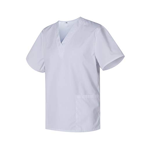 Uniformi Mediche Camice Unisex Parte Superiore Infermiera Ospedale da Lavoro UU-301 - S, Bianco