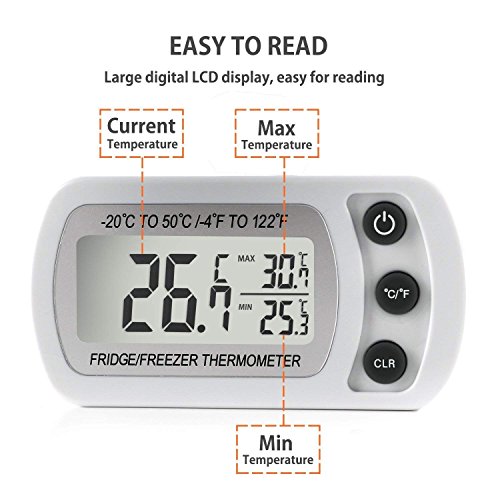 Unigear Termometro Digitale per Frigorifero 1PZ LCD Display Termometri Impermeabile da Congelatore Frigo Freezer con Gancio