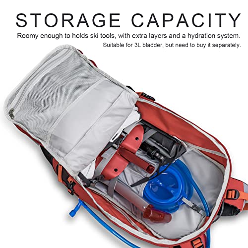 Spazio sufficiente e multitasche: lo zaino da sci Unigear misura 56 * 30 * 17,5 cm. La taglia 30L lo rende un buon zaino per lunghe giornate di tour, sci, escursionismo, alpinismo. I singoli scomparti possono riporre i tuoi attrezzi da sci organizzati, come pala da sci, piccozze, guanti da sci, abbigliamento, telefono e altro. Lo scomparto interno è adatto per laptop da 15 ", è incluso anche uno spazio di archiviazione compatibile con l'idratazione per la vescica 3L.