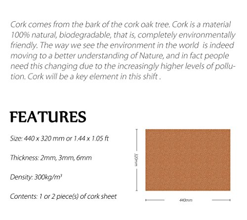 Unihom sughero Uni autoadesive - Dimensioni 43,2 x 30,5 cm (44 x 32 cm) - spessore: 2/3/6 mm, Sughero, 1pcs-3mm