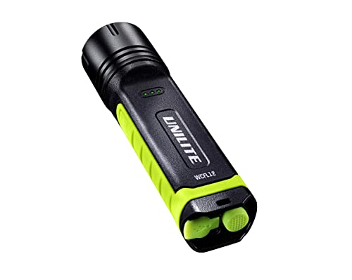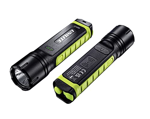 Unilite WCFL12 - Torcia di ricarica wireless con uscita da 1200 lumen, resistente in nylon, alluminio e TPR - potente batteria ricaricabile agli ioni di litio da 2600 mAh, colore: nero