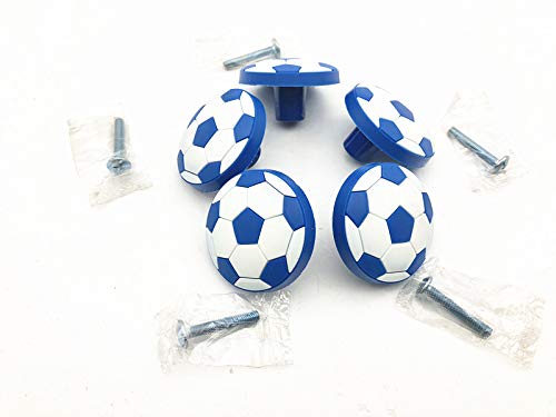 Unilocks - Pomelli per porta in gomma a forma di pallone da calcio, per cameretta bambini, dimensioni: D 3,99 cm, H 2,29 cm, colore: blu