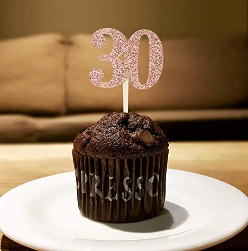 Unimall 24 Pezzi Glitter Oro Rosa Numero 30 Cupcake Toppers 30th Birthday Cupcake Picks Decorazioni per feste