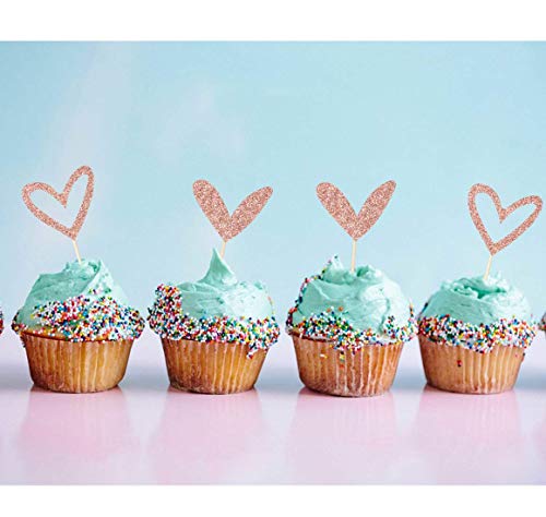 Unimall 24 pezzi Toppers cupcake glitter oro rosa Design carino Amore Toppers cupcake per matrimonio Anniversario nuziale Baby Shower Decorazioni per feste Forniture