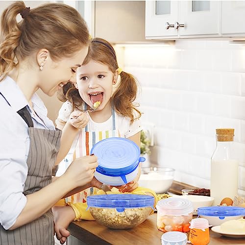 UNINGYI Silicone Lid, Silicone Stretch Lids Food Covers, Silicone Bowl Covers, Durable, Universal, Stretchable, Reusable Silicone Cover for Bowls, Cans, Fruits, Cups, Pots, Glasses (6-White, 6-Blue)