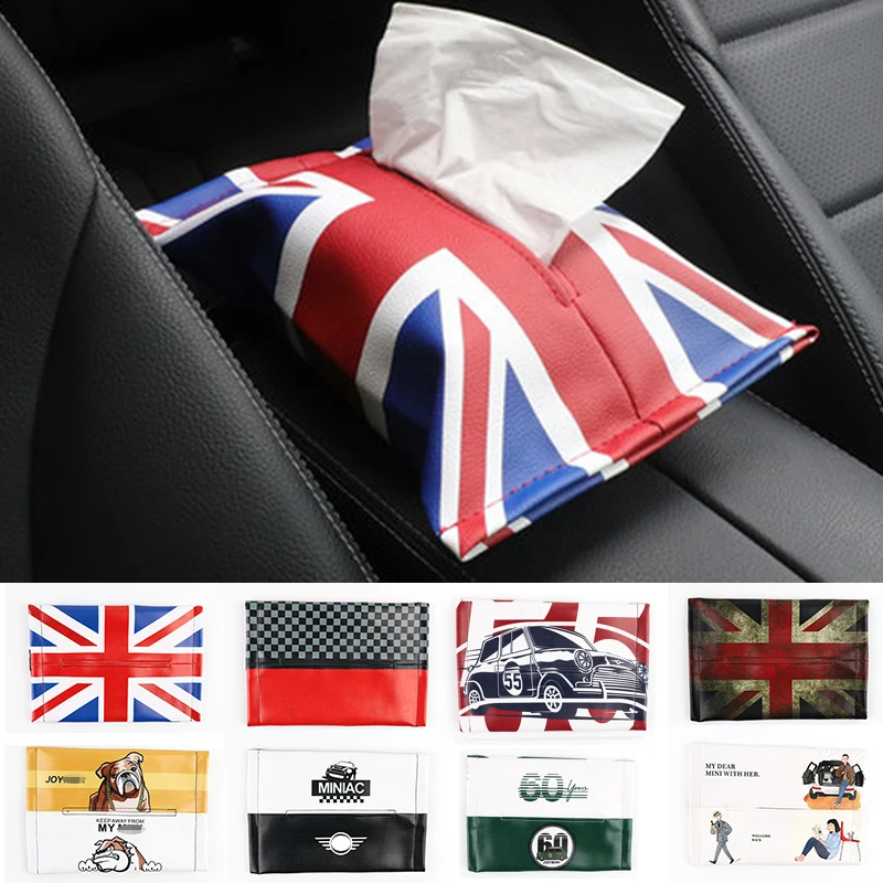 Union Jack Car Tissue Napkin Box Bag Tissue Auto Interior PU Leather package Armrest box Storage For Mini Cooper JCW S One All S
