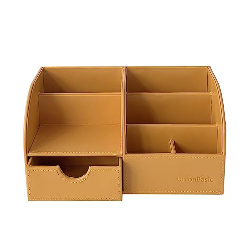 UnionBasic - Organizer da scrivania multifunzionale in pelle PU, per biglietti da visita, penne, matite, cellulare, cancelleria Arancione