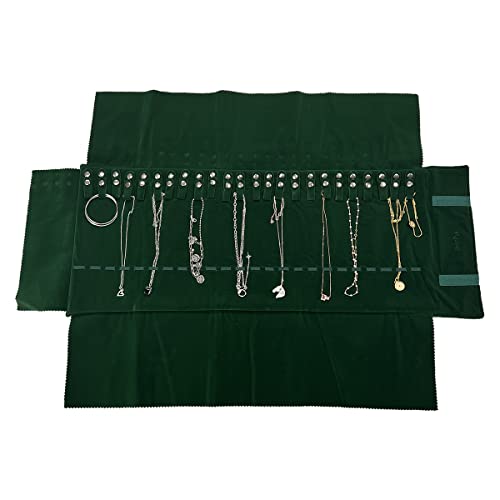 UnionPlus Portagioie in velluto da viaggio, extra large con fascia elastica solo per collane, verde nerastro