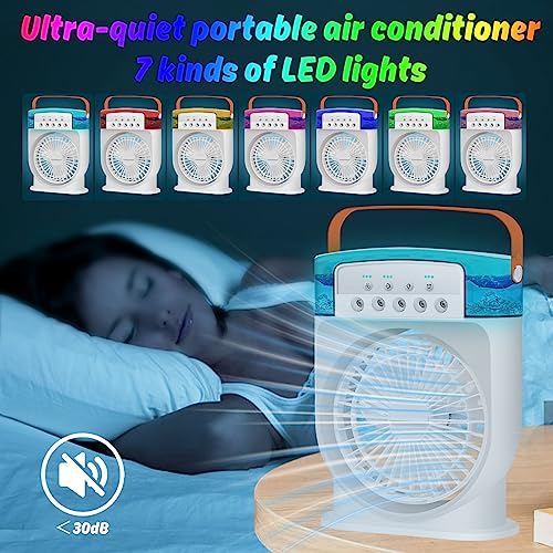 Unipampa Mini Condizionatore d'Aria Portatile, Raffreddatore d'aria 4 in 1, Evaporativo Ventilatore Climatizzatore, Umidificatore, 600ml, 3 Velocità, 7 Luci Colorati, timer, per Ufficio/Casa