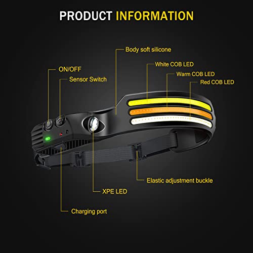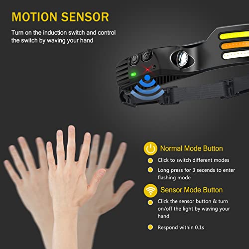 ★ 【Sensore intelligente】: il faro ha una modalità sensore intelligente, attiva la modalità sensore, basta agitare la mano davanti al sensore per accendere e spegnere rapidamente il faro ricaricabile. La luminosità massima del faro è di 1000 lumen e il raggio di illuminazione è di 300-500 metri, quindi puoi vedere chiaramente l'ambiente circostante.
