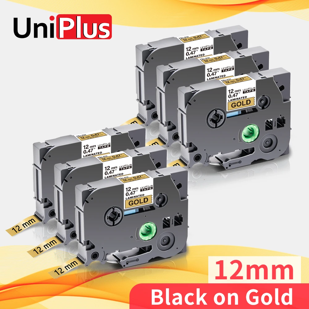 UniPlus 6PK Black on Gold Label Tape 831 12mm Compatible Label Printer