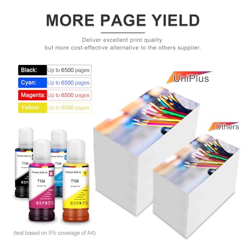 Uniplus Inchiostro 104 ET-2821 ET-2820 ET-2810 ET-2826 ET-2720 ET-2840 ET-2830 Cartucce Compatibile per Epson 104 Multipack Flaconi Compatibile per Epson Ecotank ET-2721 ET-1810 ET-2714 4700 2711 2825