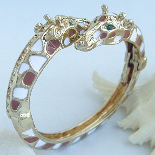 Unique Animal Giraffe Bracciale rigido rigido con cristalli austriaci trasparenti e Lega, colore: Tonalità oro bianco marrone macchia, cod. UKB033