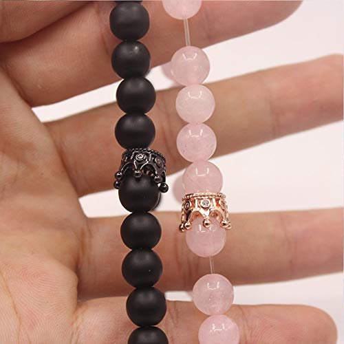 Lv.unique Paio di Bracciale Bracciale con perline in pietra naturale Bracciale con CZ Corona e gemello per partner oro Bracciale con perline nere agata bianca 8 mm di perline (Black + pink)