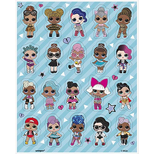 Unique Fogli adesivi-LOL Surprise Party-Confezione da 4, Multicolore, 23799