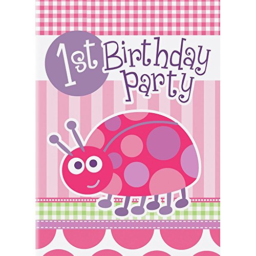 Unique - Set di 8 inviti per 1a festa di compleanno di bambina, motivo: coccinella (lingua inglese)