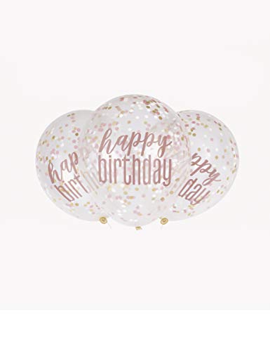 Confezione da 6 Palloncini di Coriandoli di Compleanno Glitz Oro Rosa