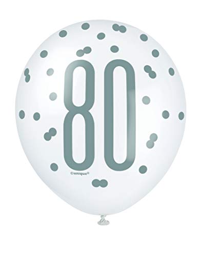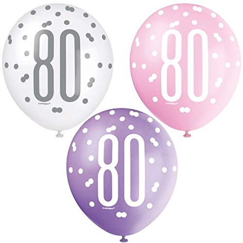 Unique- Palloncini in Lattice per Il 80° Compleanno-30 cm-Compleanno Glitz Rosa e Argento-Confezione da 15, Pink & Silver, 83416