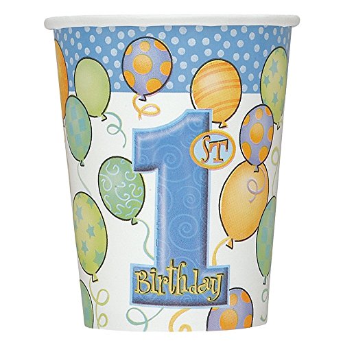 Unique Party 23946 - 266 ml Bicchieri di Carta Palloncini Blu Primo Compleanno, Confezione da 8