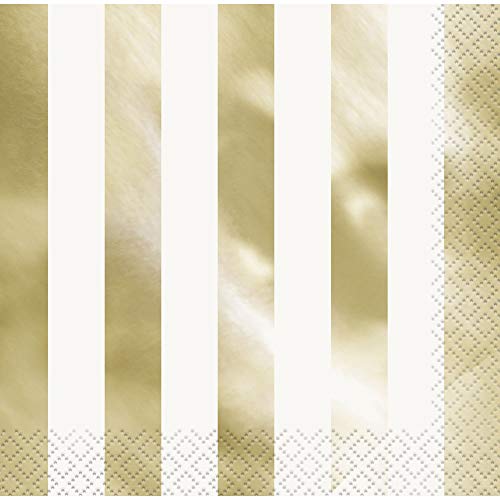 Unique Party 32312 - Tovaglioli di Carta - 16,5 cm - Lamina d'Oro a Righe - Confezione da 16
