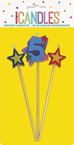 Unique Party 34045 - Numero 5 Stella Candeline di Compleanno Set di 3