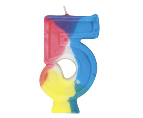 Unique Party 350-5 - Candela di compleanno con numero 5 arcobaleno