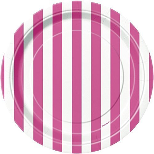 Unique Party 38024 - Piatti per Feste a Strisce Rosa Shocking, Confezione da 8, 18 cm