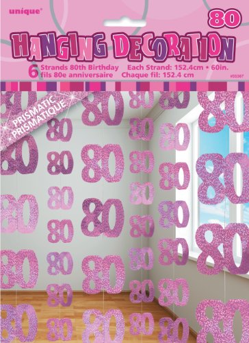 Unique Party 55367 - 1.5 m Decorazioni da Appendere per 80° Compleanno Rosa Brillante, Confezione da 6
