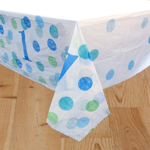 1 copritavolo in plastica per il primo compleanno a pois blu