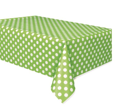 1 Tovaglia Plastificata con Pois Verdognoli (1.37 m x 2.74 m) e 16 Tovaglioli di Carta