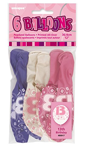 Unique Party 80917 - 30 cm Palloncini Lattice Rosa Brillante per 13° Compleanno, Confezione da 6