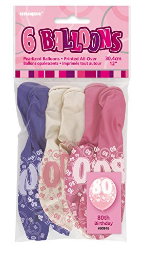 Unique Party 80918 - 30 cm Palloncini Lattice Rosa Brillante per 80° Compleanno, Confezione da 6