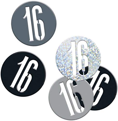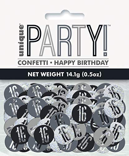 Unique Party 83823 - Coriandoli per il 16° Compleanno - 14 g - Compleanno Glitz Nero e Argento